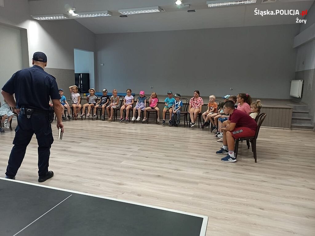 O zasadach i sposobach na bezpieczne wakacje rozmawiał dziś z dziećmi profilaktyk żorskiej Policji.