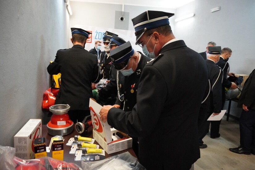 Na potrzeby OSP Kleszczów zakupione zostały: dwa radiotelefony, prądownica niskociśnieniowa oraz węże strażackie. Strażacy z OSP Osiny otrzymali kompletne ubranie specjalistyczne oraz hełm i buty. OSP Rogoźna otrzymała: opryskiwacz plecakowy, prądownicę uniwersalną, detektor wielogazowy oraz nowe węże. Do strażaków ochotników z OSP Rowień trafiły: zasysacz linowy, smok ssawny prosty, latarki specjalistyczne, linki strażackie, szelki bezpieczeństwa i pas strażacki. Jednostka OSP Rój dzięki dofinansowaniu może korzystać z nowego aparatu powietrznego z maską, parawanu wodoodpornego oraz dwóch hydronetek plecakowych. Strażacy z OSP Żory otrzymali: zestaw elektronarzędzi, detektor napięcia prądu przemiennego, osłony nóg do pracy z piłą łańcuchową, hełmy ochronne oraz cztery radiotelefony.