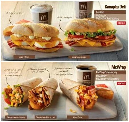 Obejmuje szeroką gamę kanapek, napojów i deserów a także dodatki, takie jak frytki i salatki. Ich zróżnicowanie pozwala na skomponowanie odpowiednio zbilansowanego posiłku przez osoby mające różne potrzeby i upodobania. Dużym ułatwieniem jest umieszczanie na opakowaniach produktów czytelnie przedstawionej informacji o wskaźnikach dziennego zapotrzebowania oraz specjalny serwis internetowy www.mcdonaldsmenu.info pozwalający m.in. na obliczenie indywidualnego zapotrzebowania na podstawowe składniki odżywcze i zestawienia ich z produktami McDonald's. Większość restauracji oferuje w godzninach porannych produkty z linii śniadaniowej, które stanowia nowośc na polskim rynku gastronomii szybkiej obsługi. Rozszerza sie również wybór kaw dostępnych w restauracji McDonald's. Nową jakością są kawiarnie McCafe, zlokalizowane wewnątrz restauracji. Oferują wysokiej jakości gorące i mrożone kawy oraz szeroki wybór deserów.